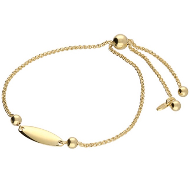 Sterling Silver 12 mm Lozenge ID Slider Bracelet Yellow Gold Plated